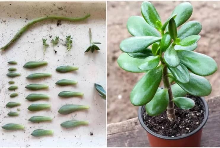 Este tipo de propagación de suculentas es mediante la reimplantación de vástagos. Se puede quitar una rama completa de una suculenta parecida a un árbol y replantarla para formar una nueva planta.