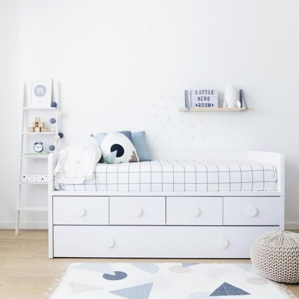 Y si lo que deseamos es ahorrar espacio, las camas nido son ideales. Cuando los niños llegan a la edad de hacer pijamadas, este tipo de camas son ideales, pues en cuestión de segundos tendrás una o dos camas extra. Tal vez no sean la mejor opción para dormitorios infantiles compartidos, pero si lo son para cuando los peques invitan a sus amiguitos a dormir.