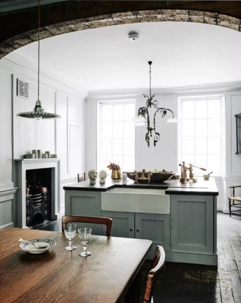 Podrías, por ejemplo, colocar muebles pintados en tonos más fuertes. Emplea colores de moda como el classic blue o atrévete con el negro o el gris oscuro. Este tipo de colores contrastará enormemente con el resto de elementos en madera y blanco que quieras incluir en la cocina.