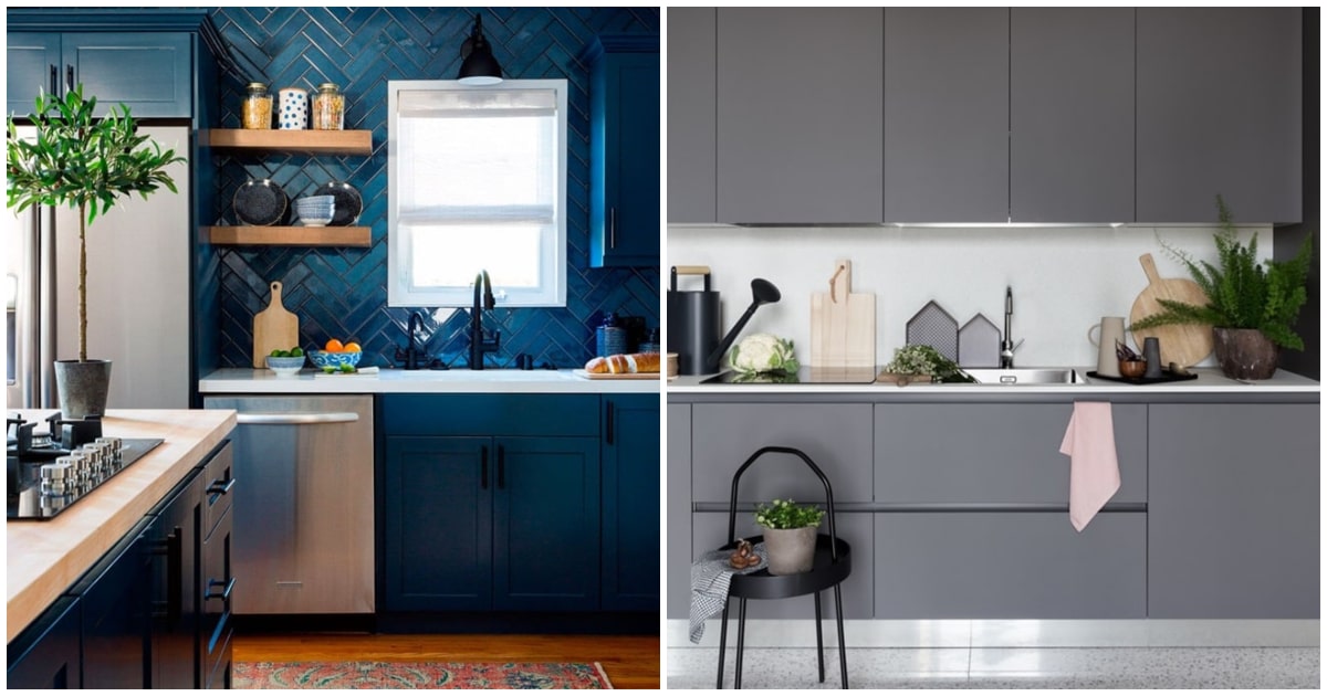 Cuando se trata de colores para cocinas nos encanta el azul porque encaja con grises y blancos a partes iguales. Además, la madera sienta francamente bien con el azul, así es que si estabas pensando con qué combinar tu encimera de madera, ya sabes, aquí puedes tener un buen socio.