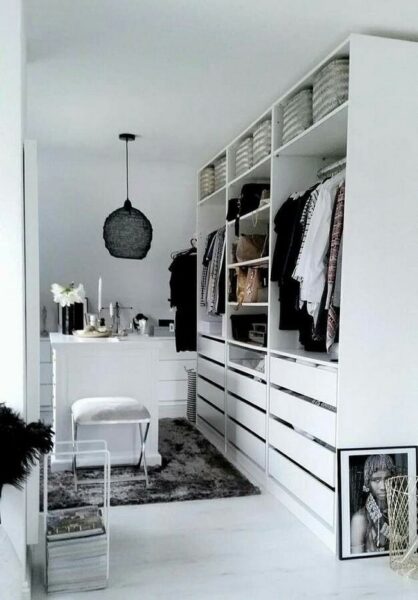 Lo primero que debes hacer es planificar tu armario. Piensa en la ropa que tienes. Piensa en los complementos e incluso en lo largas que son tus prendas. Observándolas podrás ver qué necesidades tienes. Es posible que necesites un montón de espacio para zapatos pero que no cuentes casi con pantalones, por ejemplo.