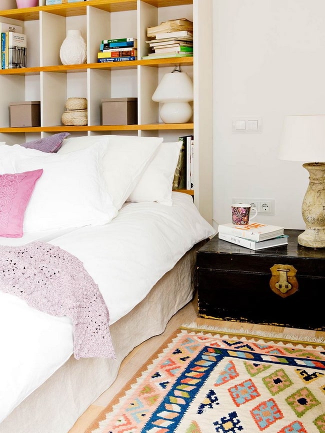 Otra opción es utilizar un antiguo baúl como mesilla de noche. Esta idea es genial para conseguir un dormitorio estilo vintage.