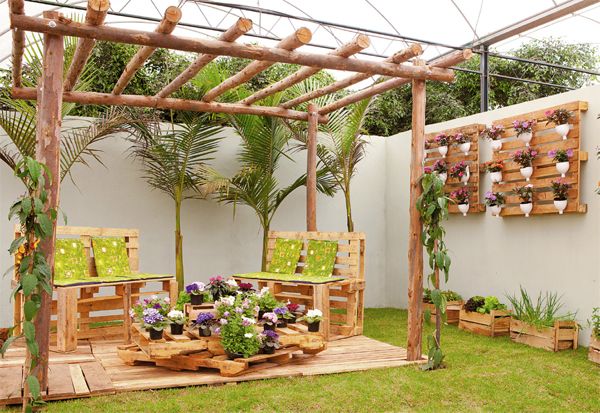 Utilizar la madera reciclada es uno de los recurso más efectivo y económicos para decorar los patios con poco dinero. Si bien se pueden utilizar diferentes tipos de madera, uno de los clásicos son los muebles de exterior con palets.