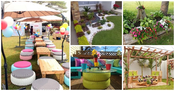 Las llantas, neumáticos o ruedas de coche, son complementos ideales para decorar patios, terrazas y jardines. Obviamente que nos referimos a las ruedas recicladas, pues la idea es decorar con poco dinero. Una de las opciones más vistas son los maceteros hechos con neumáticos reciclados.