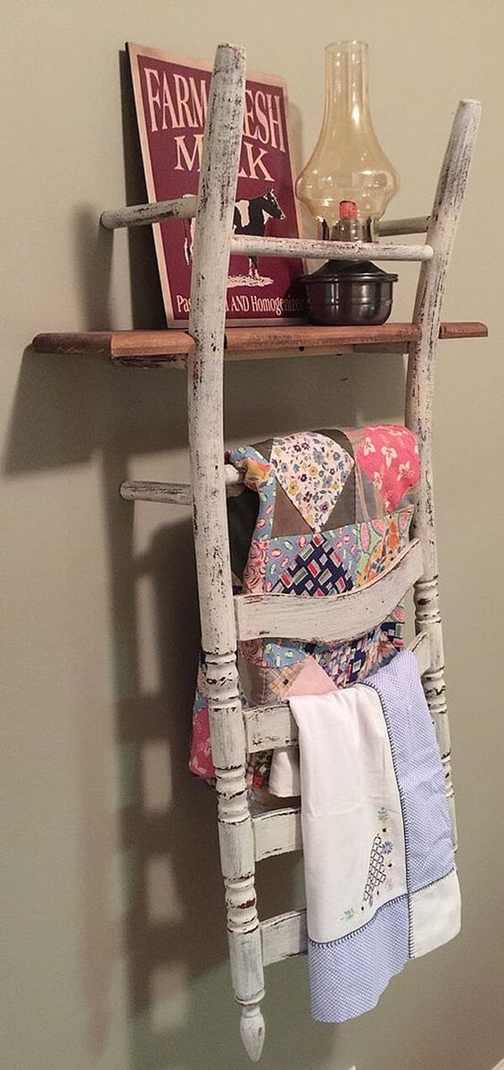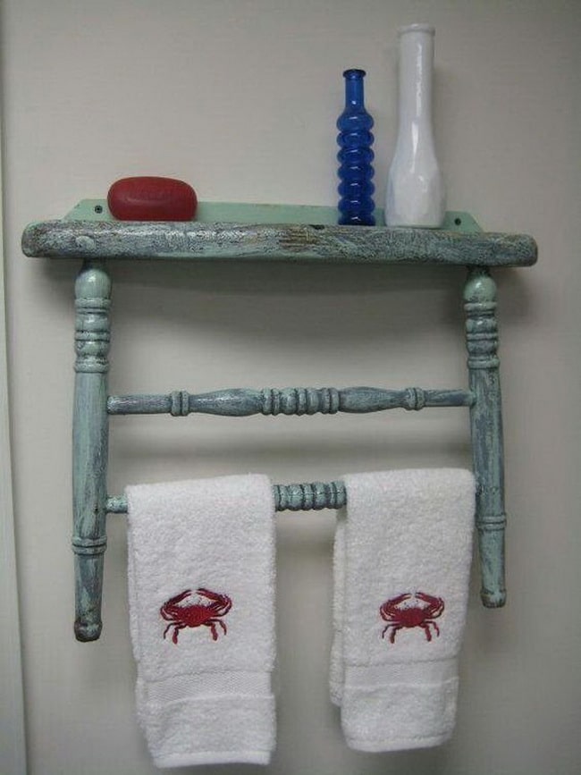 Las sillas pueden ser recicladas de diferentes formas y cada una de ellas aporta un estilo único. Me parece una buena idea la de utilizar una vieja silla para organizar los productos del baño. Necesitas pocos materiales para lograr un estilo renovado.