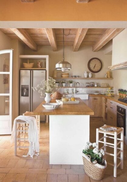 Recrean el ambiente rural de las casas de campo o de pueblo que tienen una conexión particular con la naturaleza y aportan ese “calor de hogar” que tanto nos gusta. Si quieres que tu cocina respire paz y tranquilidad apuesta por el estilo rústico.
