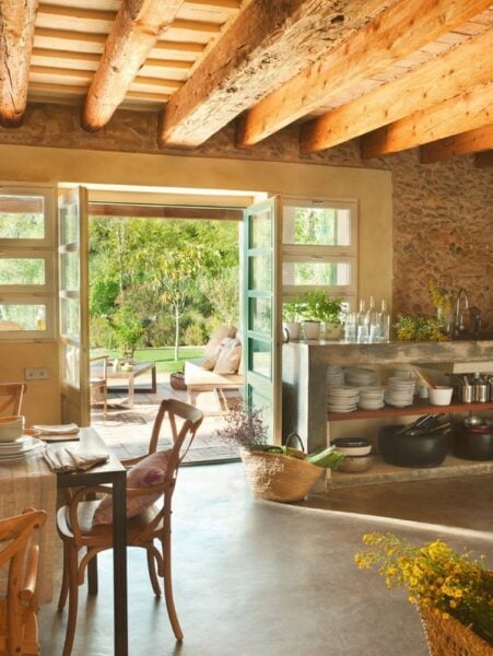 La madera junto con la piedra son los protagonistas de la decoración y de la arquitectura de las cocinas rústicas. En ellas veremos muros de mampostería, vigas de madera vistas, y,en ocasiones, suelos de barro cocido…