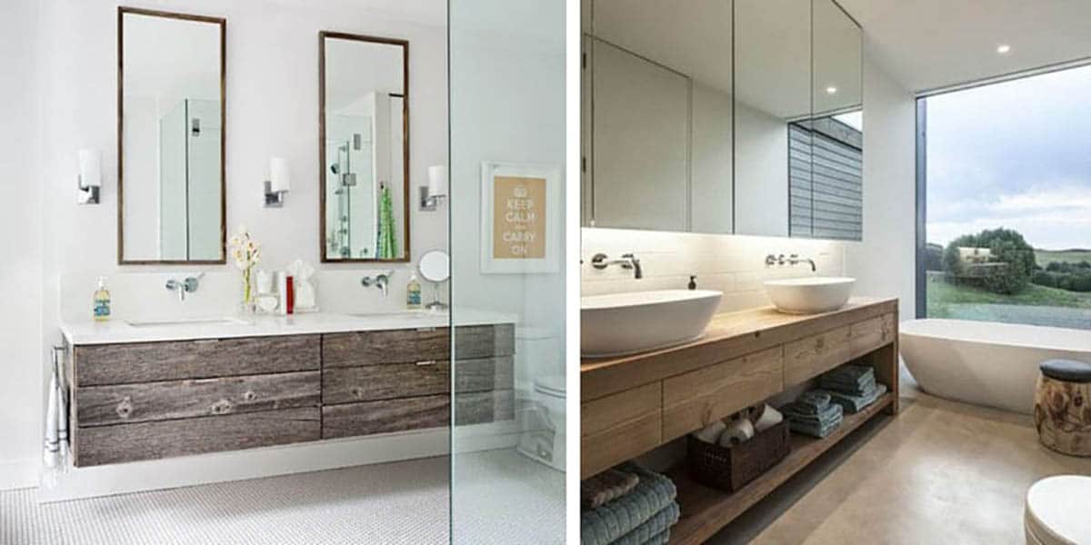 El resultado en estos casos es un mueble de lavabo con una parte más moderna, con cerámica blanca, mezclado con una parte baja en madera con tablas gruesas y un aspecto sencillo y fuerte. Son lavabos que además suelen ser muy duraderos y perfectos para adaptarse a los cambios de tendencias.