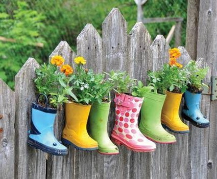 Finalmente un gran clásico. Las macetas con botas de agua. Pocas opciones quedan tan originales como esta; y es que no podemos negar que este tipo de objeto tiene un halo especial, creando así un ambiente único en nuestro jardín.