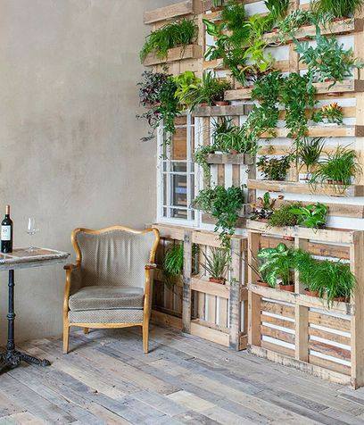 Pallets de madera reutilizados para colocar plantas