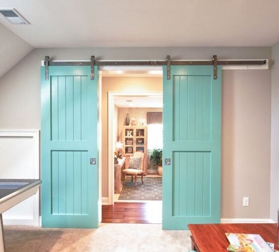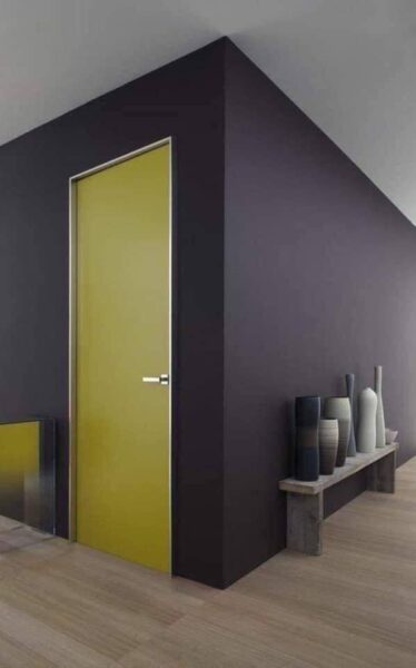 Como podemos observar las puertas coloridas combinan muy bien con los ambientes que cuentan con paredes pintadas de blanco. Resaltan su color y su estilo se caracteriza por ser moderno.