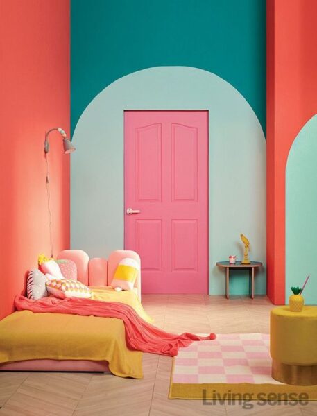 Otra manera de ambientar los espacios es combinando con colores llamativos las puertas y las paredes. En algunos casos las puertas pasan desapercibidas y en otros se utiliza una paleta de colores similar marcando firmemente una tendencia.